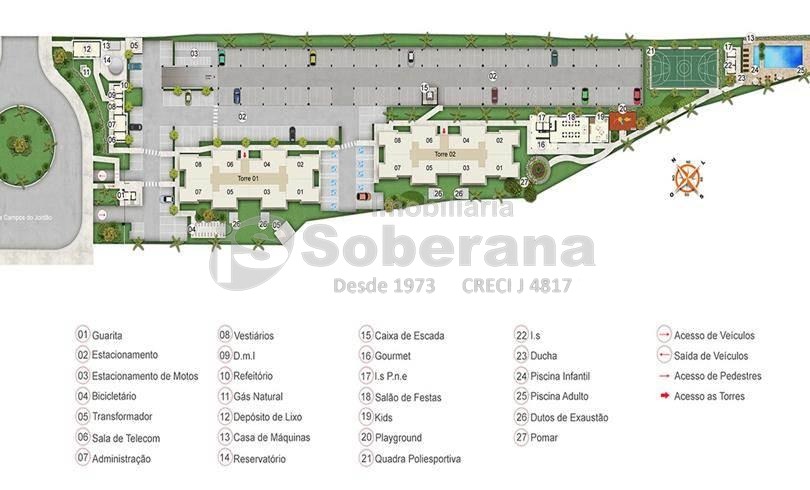 O condomínio contem graciosa área de lazer para a família com piscinas, salão de festas, play ground.