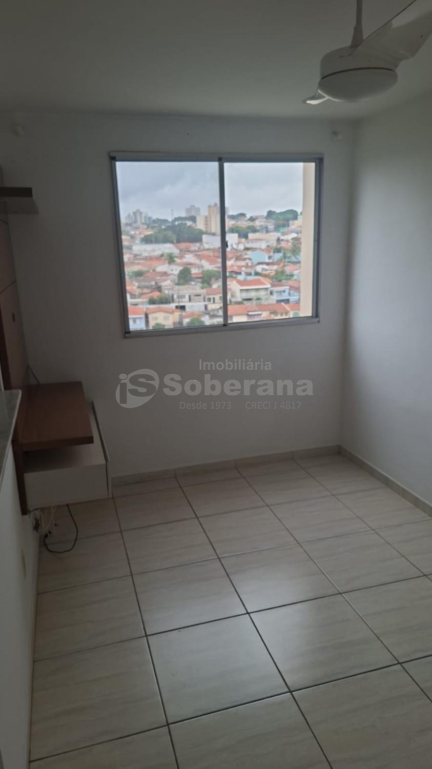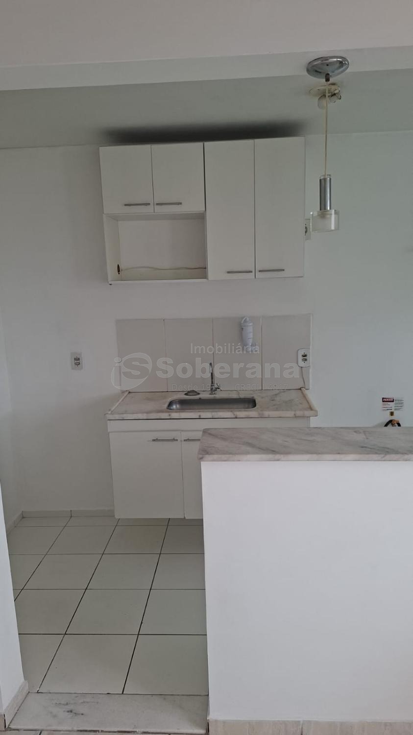 Apartamento com 2 quartos com armários, 1 banheiro, sala para dois ambientes, cozinha, área de serviço.