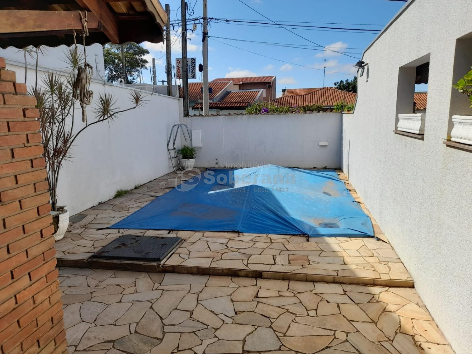 Residencia com 4 dormitorios com armários, sendo 1 suite, salas de estar e jantar, cozinha americana, banheiro social, lavanderia, quintal, cobertura com churrasqueira, piscina e garagem para 4 autos