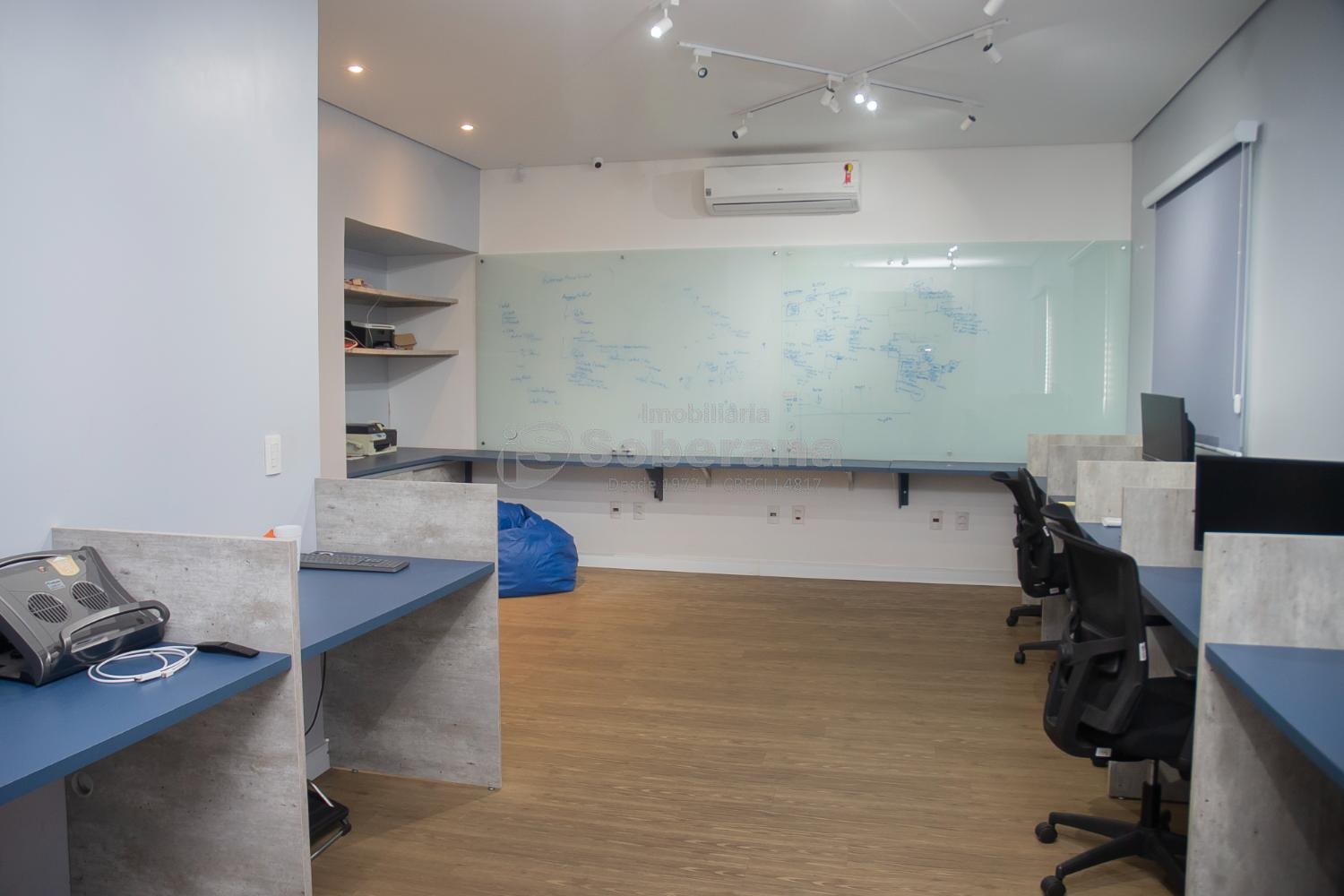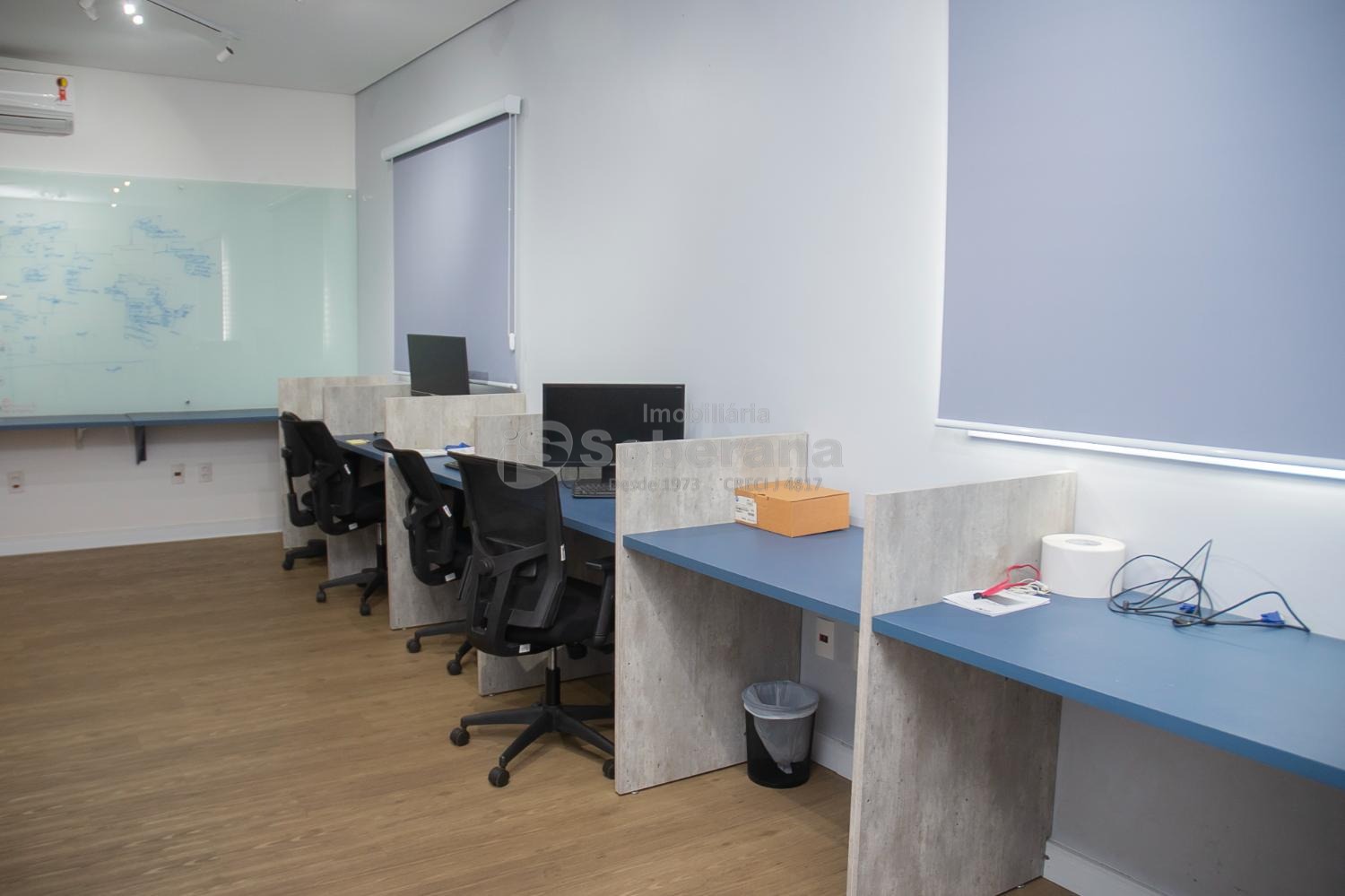 Rua paralela a avenida Brasil, próximo à Oficina do Estudante. Todos os acessos com grades de proteção. Sistema de alarmes, cerca elétrica e câmeras internas + empresa de monitoramento acesso via internet, hidráulica e elétrica refeitas, cabeamento de rede CAT 6 em todos ambientes, ar condicionado inverter, persianas blackout, sala de reunião, bancadas e mesas, painéis, salas com baias, armários embutidos, banheiros masculino e feminino (adaptado PCD) + banheiro na edícula com chuveiro, refeitório com mesa, sala para estoque, quintal, portão eletrônico e estacionamento para 4 veículos.