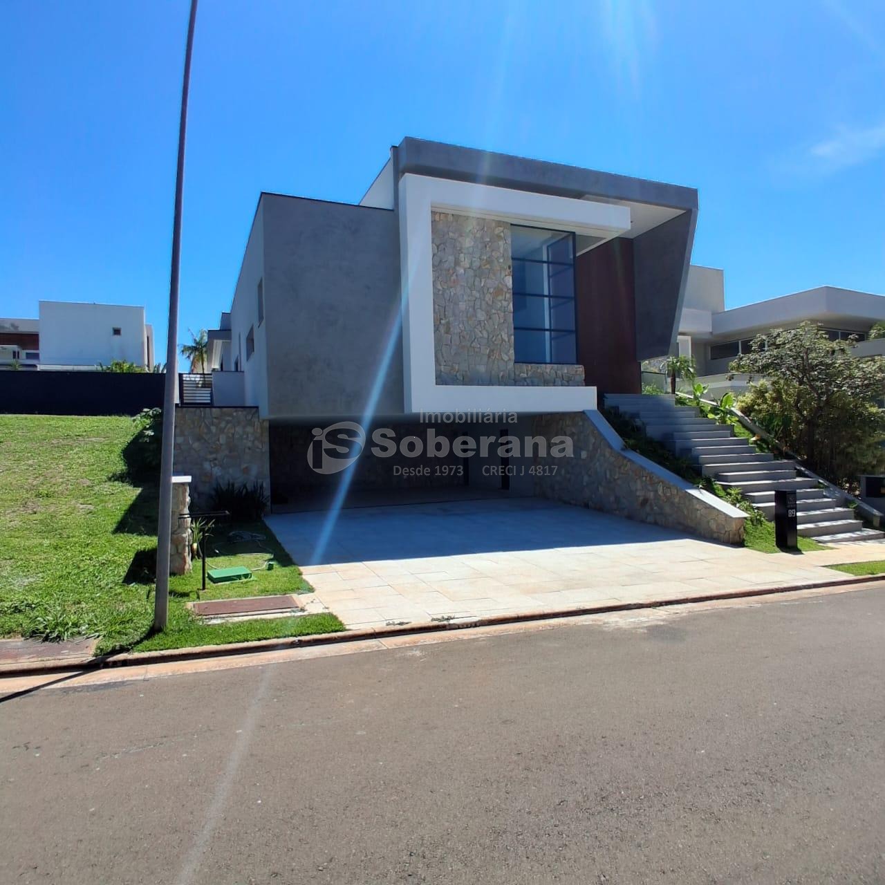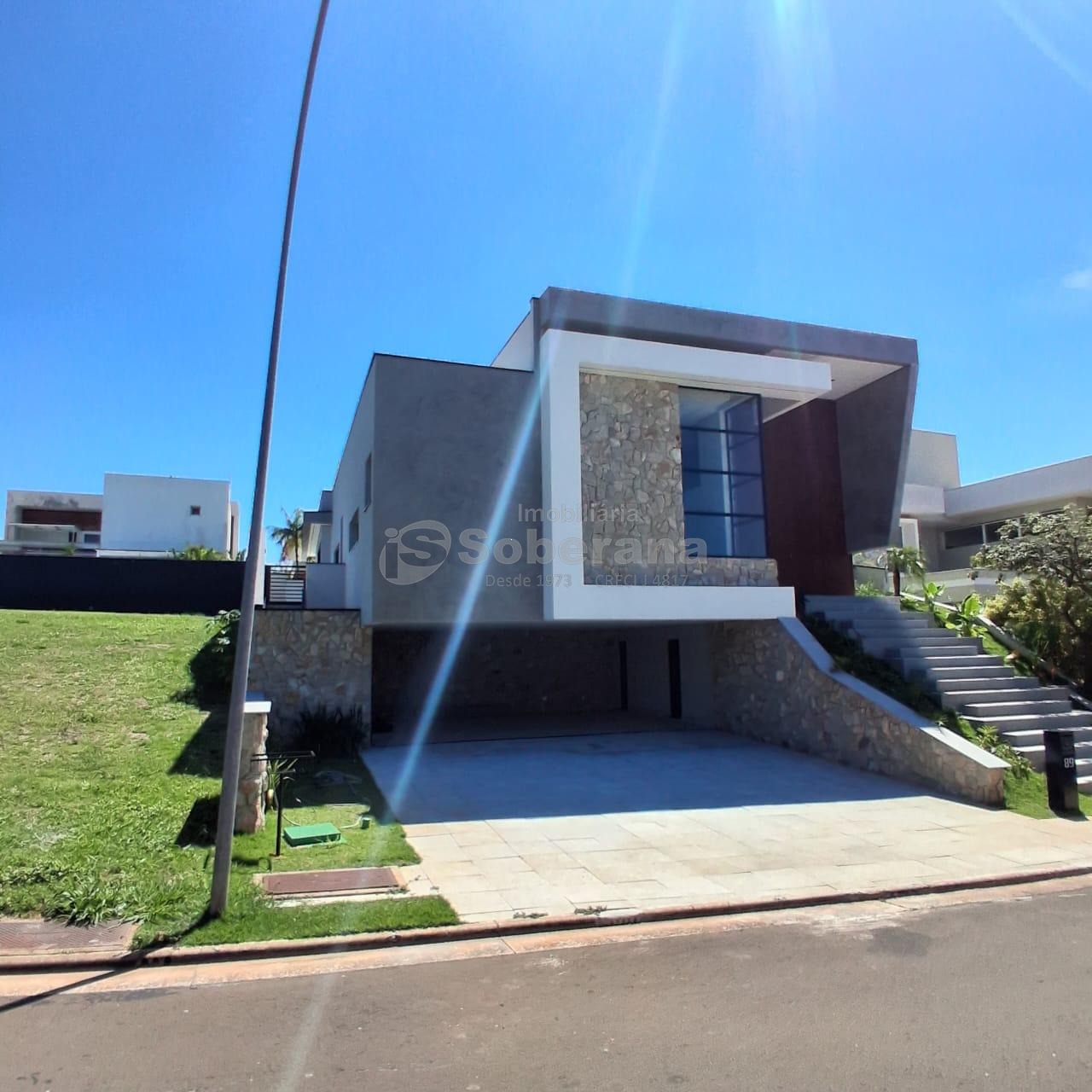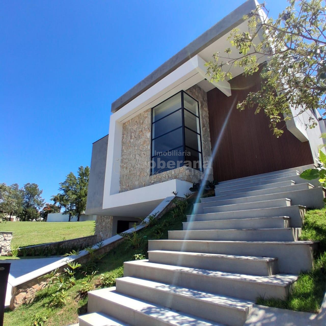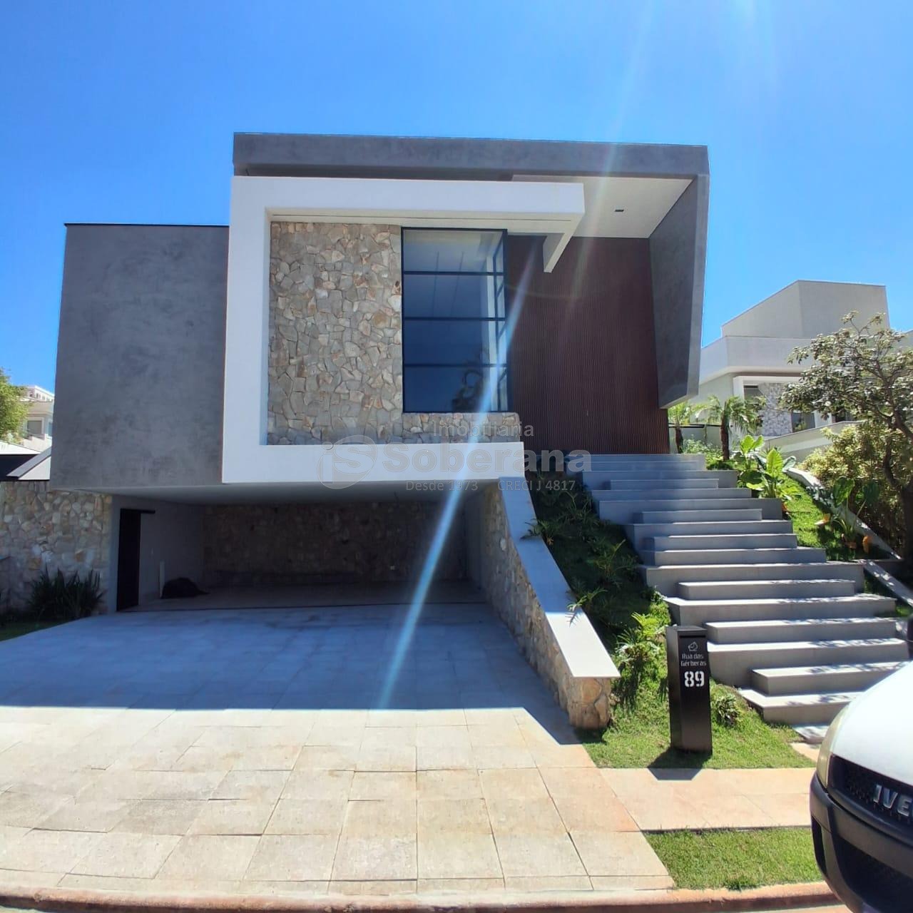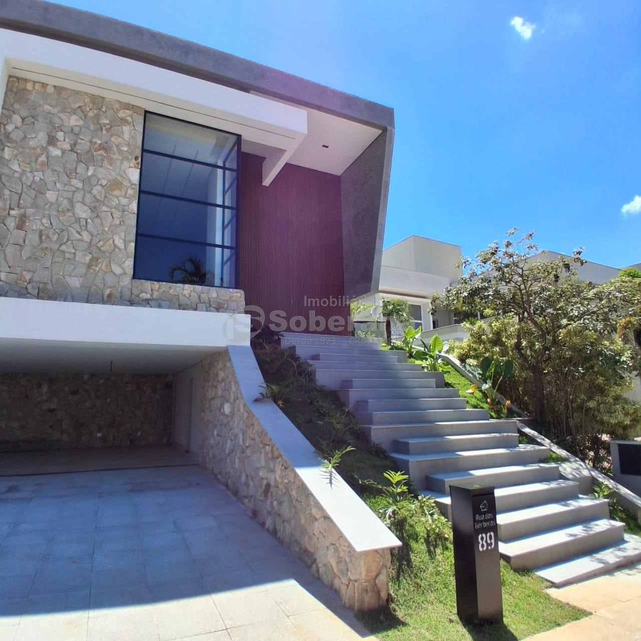 Logo na fachada o imovel impressiona com um mix de pedras naturais, vidros e personalidade.