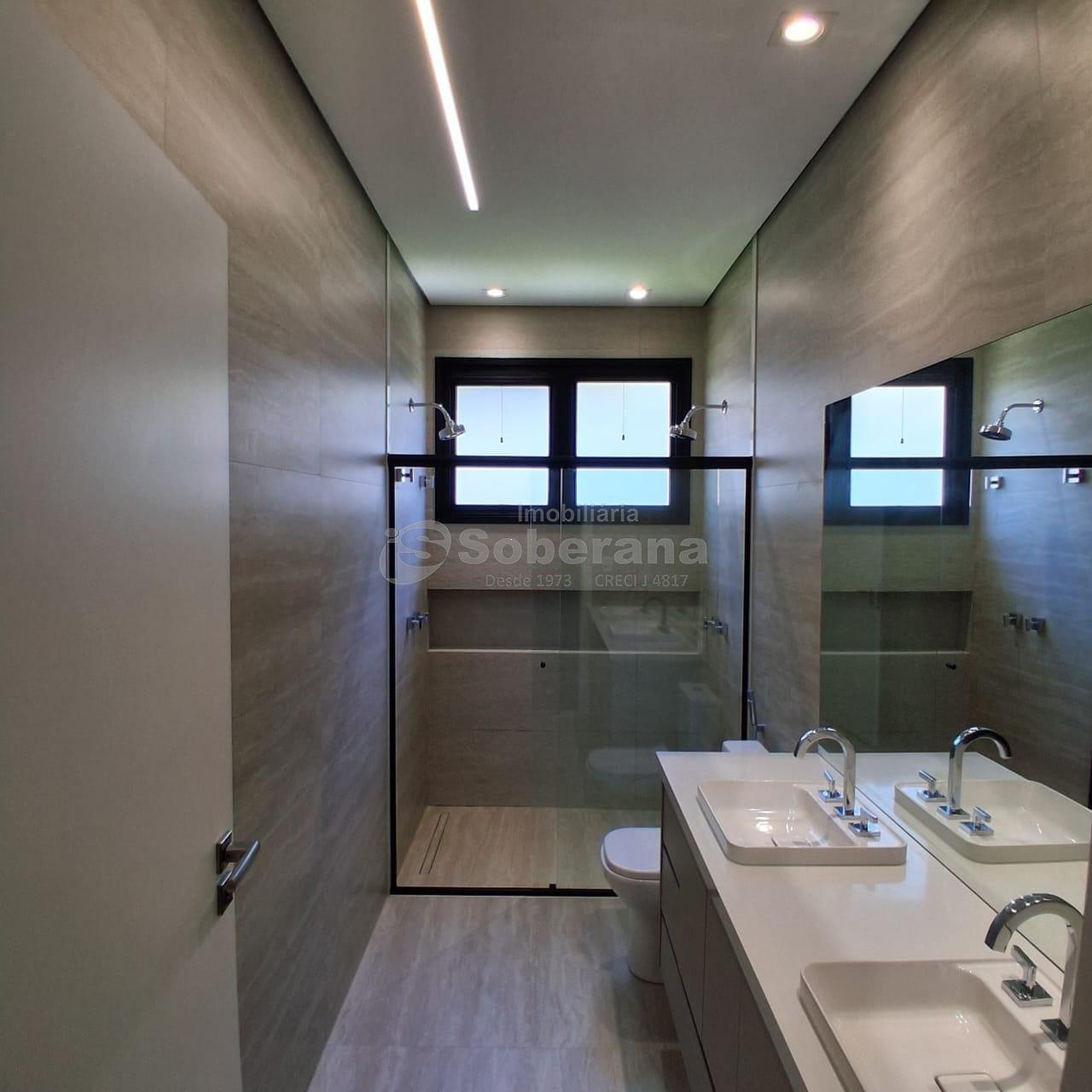 A área intima dispõe de 3 suítes todas com closet. A suíte máster é um verdadeiro refugio, com destaque para o banheiro com 2 duchas.