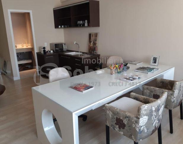Sala de 40 m², MOBILIADA, com ar condicionado mesa cadeiras armários piso laminado ar condicionado inverter, forro de gesso, lâmpadas em led, frigo bar , 1 vaga de garagem . Pronta para entrar e começar a trabalhar !