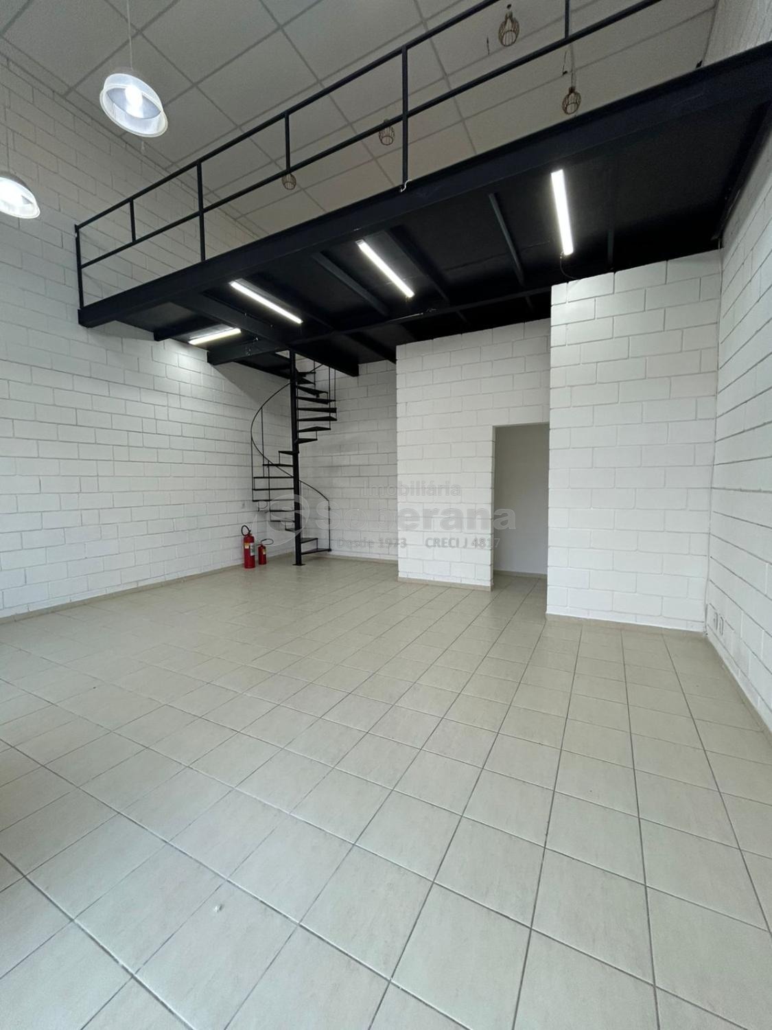 Sala ampla com 54 m2, com aparelho de ar condicionado, contendo um mezanino, 1 banheiro. Fica no térreo, muito bem localizada.